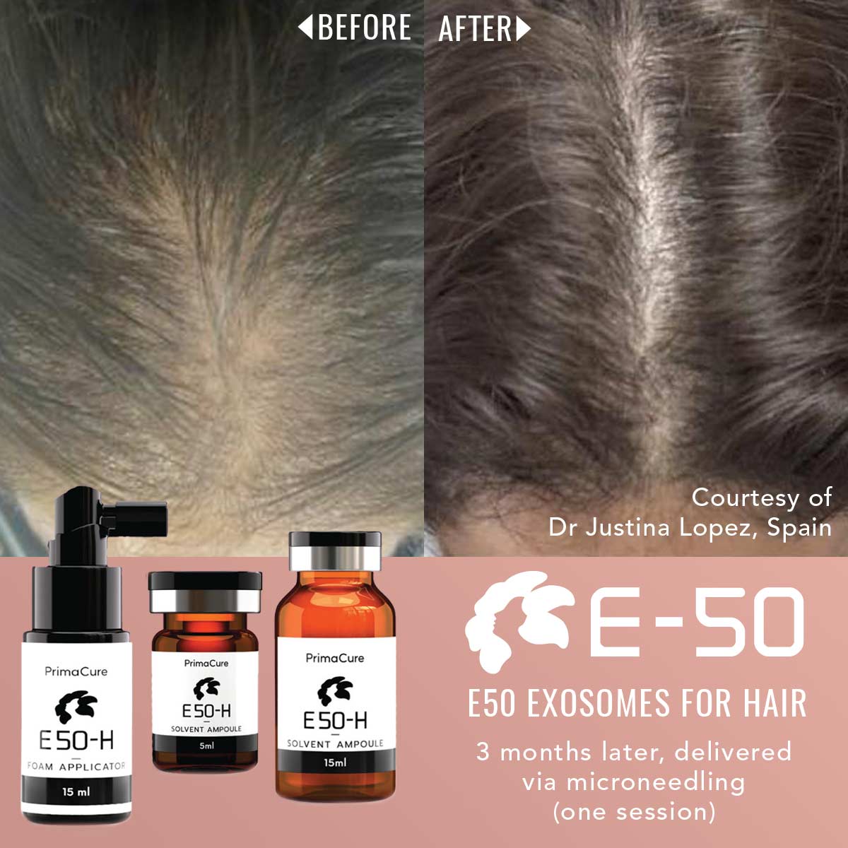 This sophisticated cultivation approach not only enhances purity but also significantly accelerates production, limiting exosome doubling time. As a result, E-50 Exosomes achieve a homogeneous and potent formulation, providing up to 10,000 times more exosomes per unit compared to conventional products. With E-50 Exosomes, practitioners can confidently offer treatments that deliver superior regenerative outcomes in both skin rejuvenation and hair restoration.